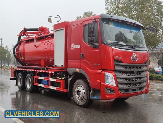 شاحنة شفط مياه الصرف الصحي CHENGLONG H7 بسعة 14,000 لتر، مزودة بنظام شفط نفاث، هي حل عالي الأداء لتنظيف مجاري الصرف الصحي وإدارة النفايات بشكل متطور. صُممت الشاحنة على هيكل DONGFENG CHENGLONG H7 6x4، مع قيادة يمينية، ومحرك YC6MK380-30 بقوة 380 حصانًا، مما يوفر قوة هائلة وقدرة ممتازة على الطرق الوعرة.