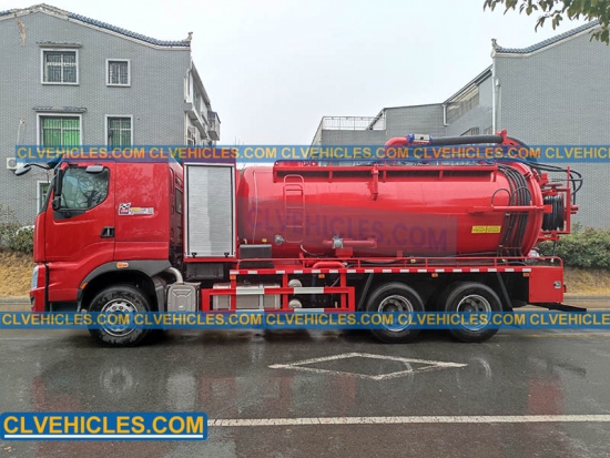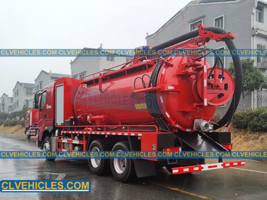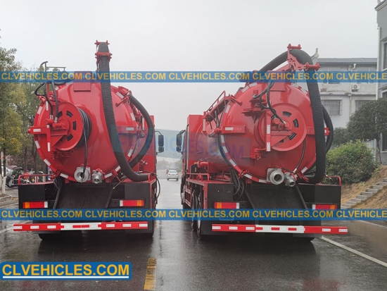 تجمع الشاحنة بين خزان صرف صحي من الفولاذ الكربوني بسعة 10000 لتر مع مضخة تفريغ SK-42 وخزان مياه بسعة 4000 لتر مزود بمضخة عالية الضغط بقوة 330 لترًا في الدقيقة للنفث والشفط بكفاءة.