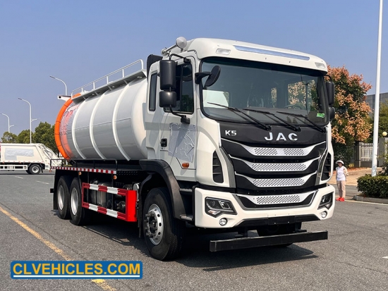 صُممت الشاحنة على هيكل JAC 6x4 متين مع نظام قيادة يساري، ومُجهزة بمحرك CA6DLD-29E6 بقوة 290 حصانًا، مما يُقدم أداءً قويًا وموثوقية عالية. تتميز الشاحنة بخزان صرف صحي سعة 17,000 لتر مصنوع من الفولاذ الكربوني المقاوم للصدأ بسمك 8 مم.