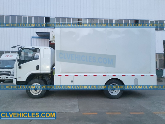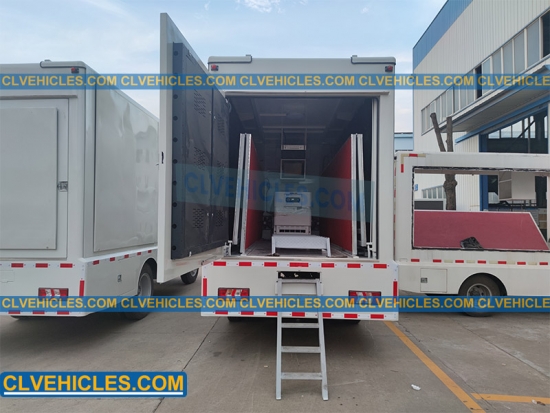 تتميز الشاحنة بشاشات LED P6 مزدوجة الجانب بقياس 4416 × 2112 مم، مثبتة على أنظمة رفع هيدروليكية لسهولة النشر. ومجهزة بمولد صامت بقوة 20 كيلو وات، مما يتيح التشغيل المستقل للإعلان الخارجي والأحداث والعروض الترويجية.