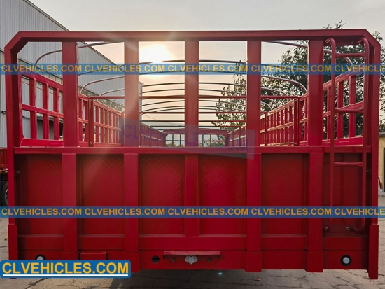 نصف مقطورة قفص الشحن المسطحة بثلاثة محاور، بطول 13 مترًا، هي حل نقل متين مصمم لنقل البضائع بأمان وكفاءة. بأبعاد إجمالية تبلغ 13,200 × 2,600 × 3,200 مم، وسعة تحميل تبلغ 13 طنًا، تتميز بهيكل رئيسي متين (500/10/8/12 مم) وأرضية فولاذية بسمك 3 مم لضمان أقصى قدر من المتانة.